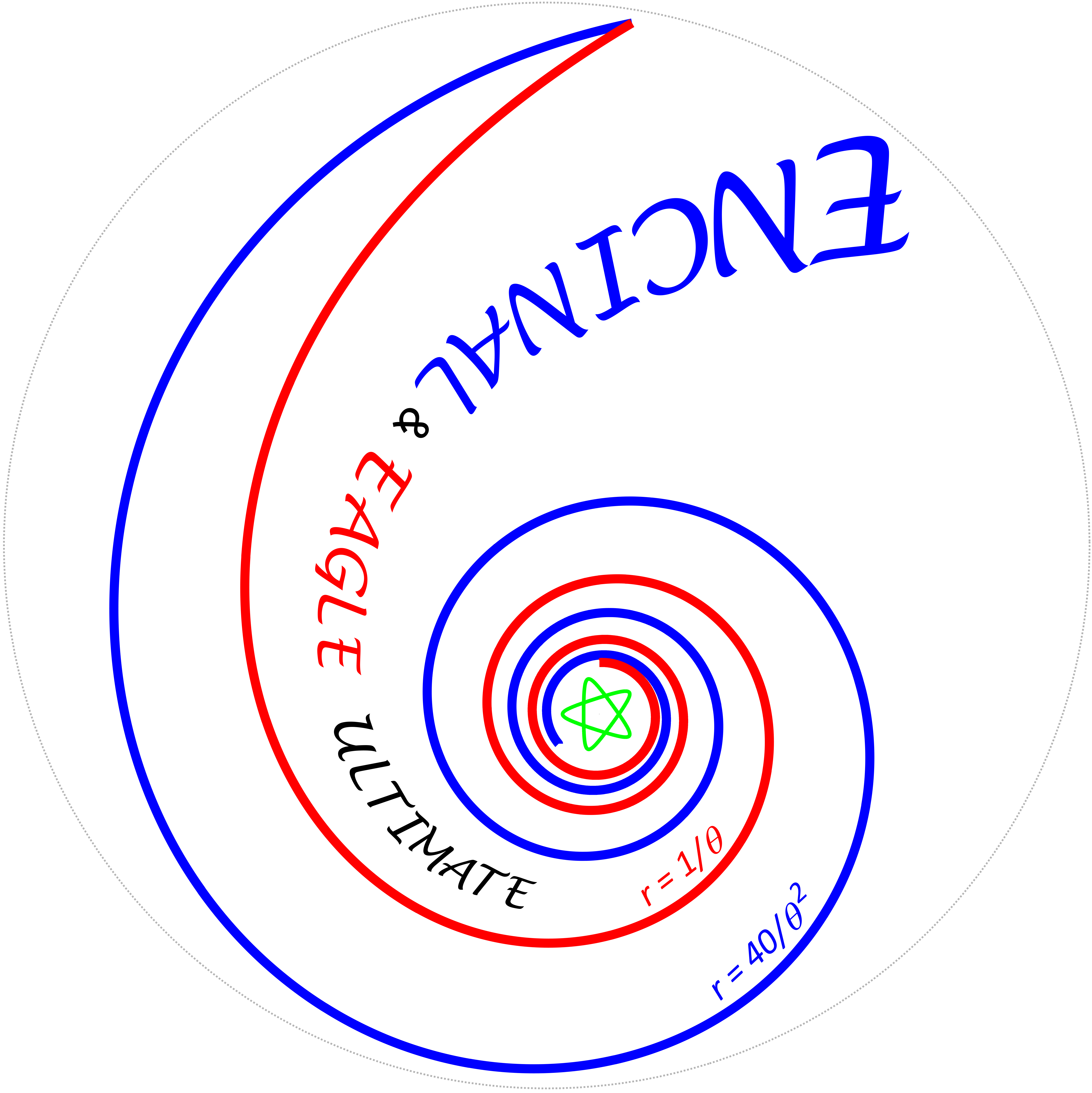 exponent of theta determines how fast the curve spirals outward. The path of the text characters
