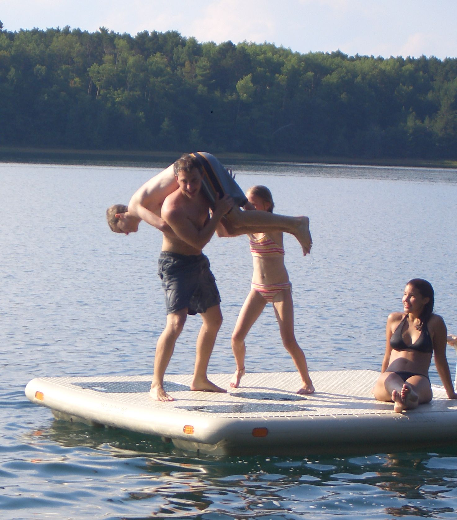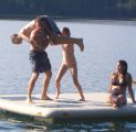 ... king of the raft, swimming across the lake, walking around the lake,